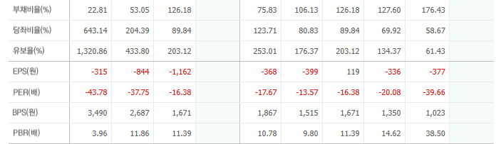 | 영업이익 | 적자/근접 | 개선 필요 |