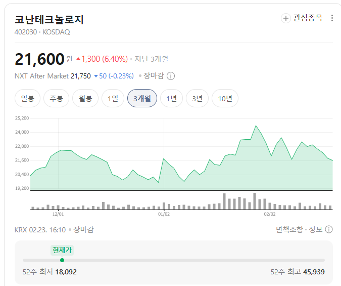 | 종목 | 코난테크놀로지 |