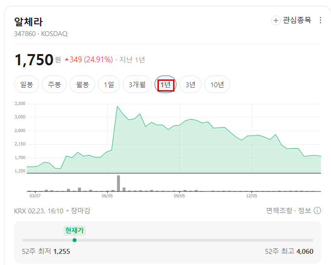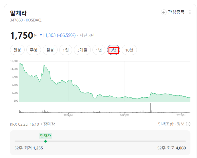 | 종목 | 알체라 |